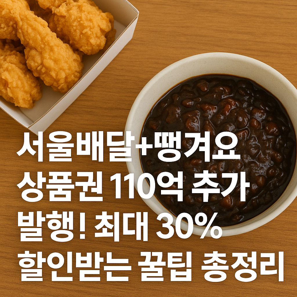 서울배달+땡겨요 110억 추가 발행! 15% 즉시할인 + 10% 페이백 + 5% 포인트로 최대 30% 절약