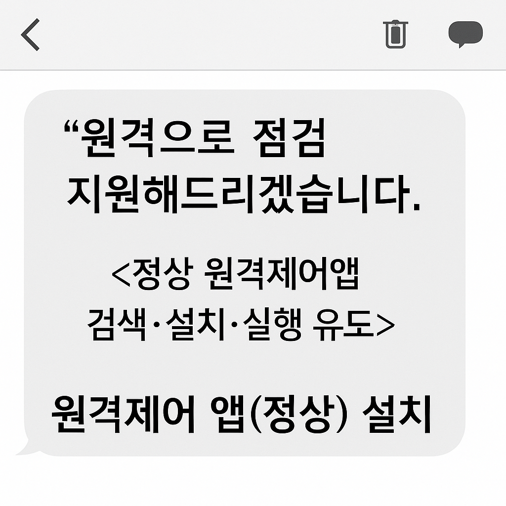 | 공식 경로 외 앱 설치 금지 | 정부기관, 통신사는 절대 원격제어 앱 설치를 요구하지 않습니다. |