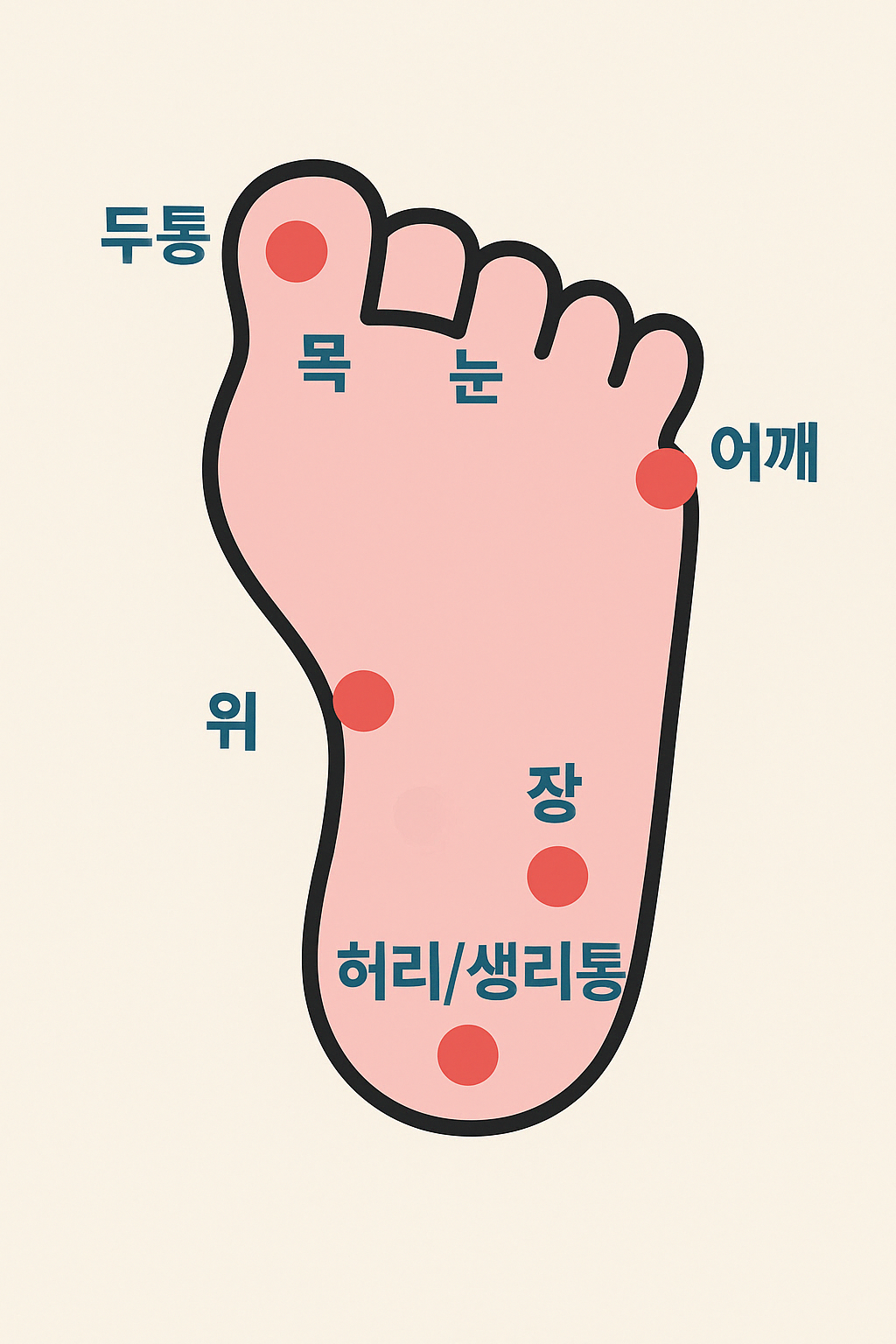- 아침저녁 3분간 족욕 후 엄지로 10회씩 깊게 누르기