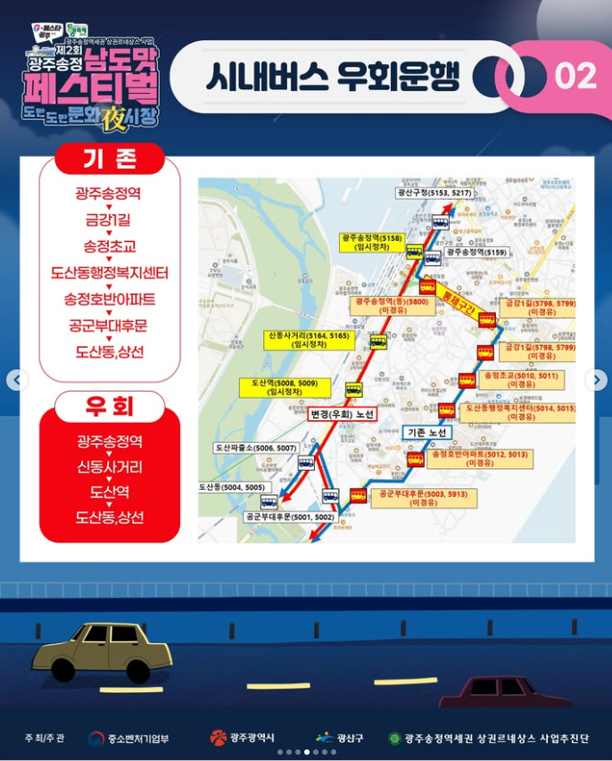 • 광주송정역(KTX·SRT) 도보권. 행사 시간대 대중교통 강력 추천.
