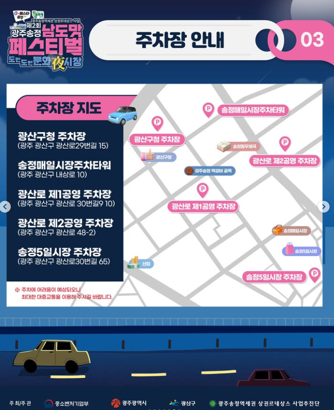 - 광주송정역(KTX·SRT) 도보권. 행사 시간대 대중교통 강력 추천.