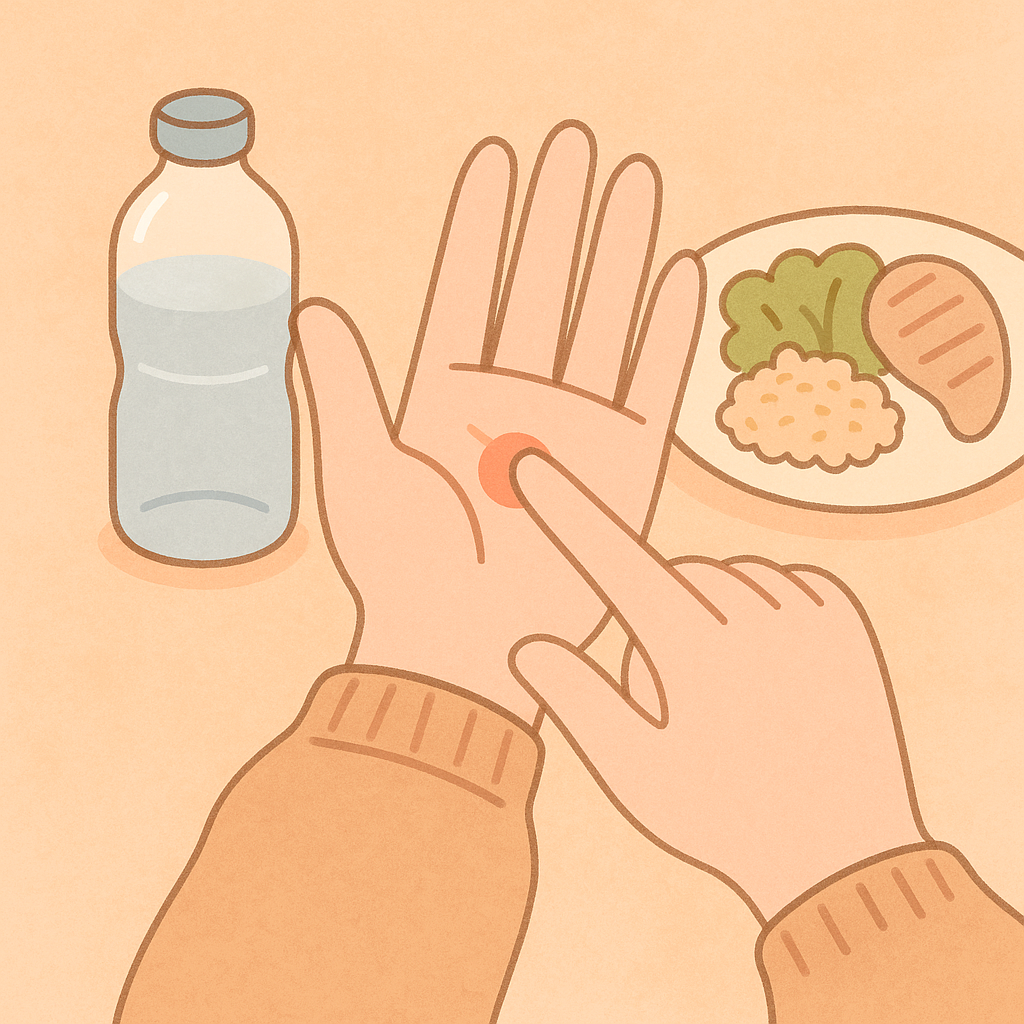 - ✔ 아침 공복: 기점혈 3회 자극 (식욕 억제)