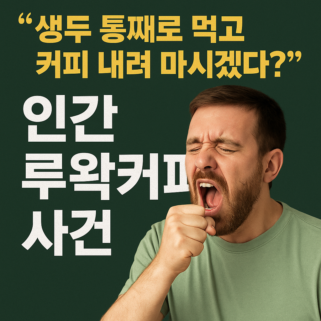 그의 의도는 그럴듯(?)했습니다. "루왁 커피는 동물이 먹고 싼 콩을 마시잖아? 나도 인간 루왁이 되어보자!" 영상 속 그는 당당하게 “씹지 말고 통째로 삼켜야 한다”며 생두를 삼키는 장면을 촬영했고, 이 영상은 SNS에서 순식간에 퍼졌습니다.