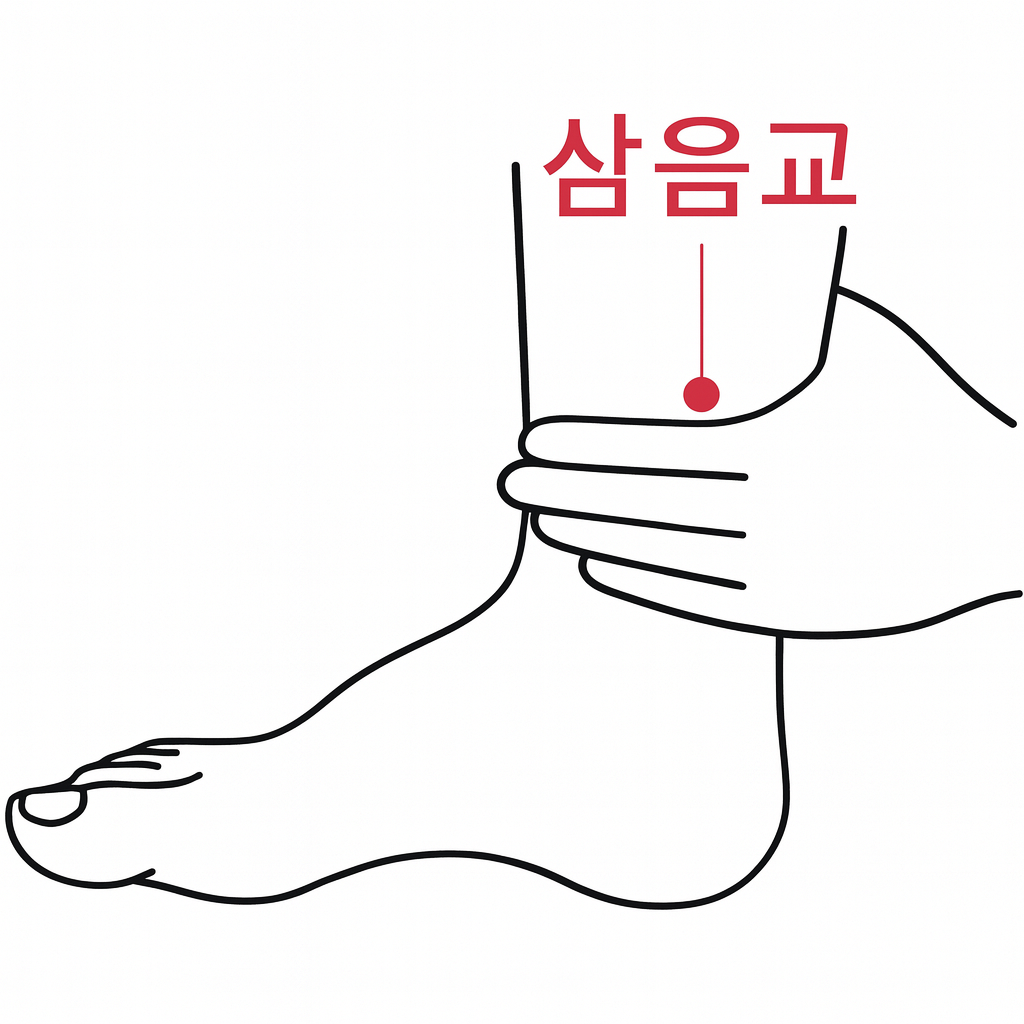 💡 “삼음교는 여성 건강의 3대 핵심 혈자리”라고 불릴 만큼 자궁과 난소, 비장과 신장을 지켜주는 보물 같은 자리입니다.