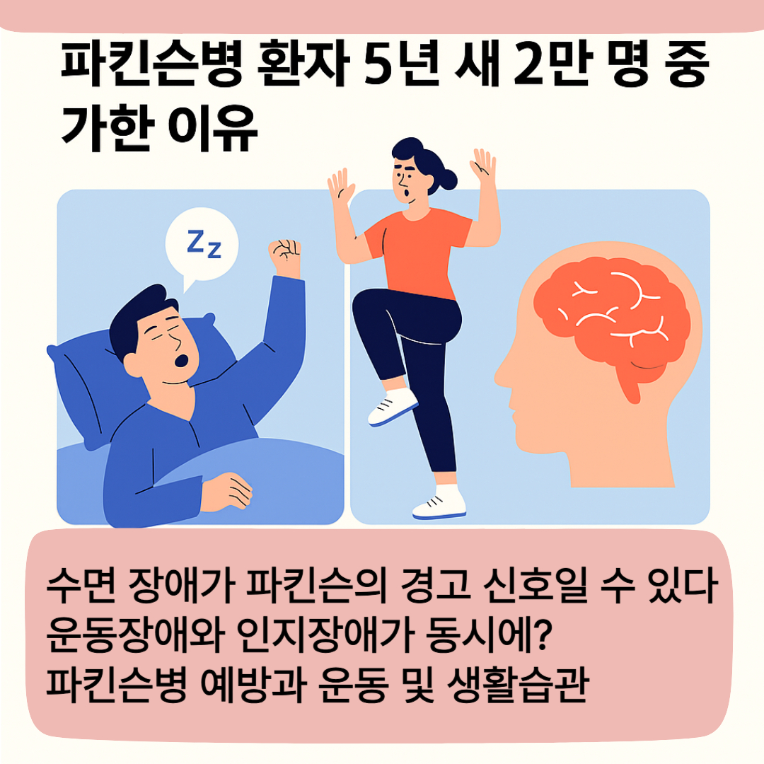최근 사례에 따르면 단순한 잠꼬대나 수면장애가 파킨슨병의 초기 증상일 수 있습니다. 꿈에서 본 행동을 실제로 따라 하며 굴러떨어지는 등, 렘수면 행동장애가 대표적입니다. 이를 간과하지 말고 전문가의 진단을 받는 것이 중요합니다.