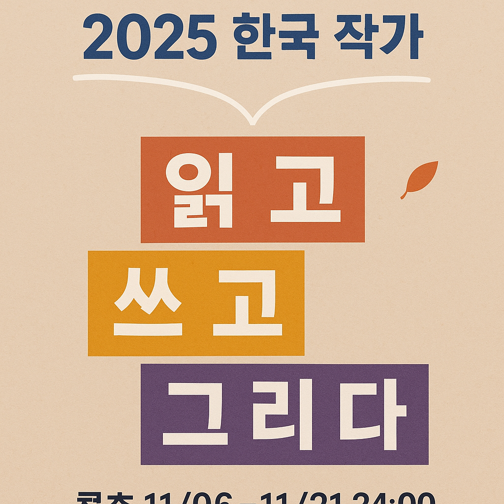 한강 작가의 작품을 통해 문학적 상상력을 깨우고, 읽고 쓰고 그리는 과정을 통해 우리 안의 예술성을 표현하는 창작 공모전입니다. 문학·미술·스토리텔링을 융합해 자유롭게 참여할 수 있습니다.