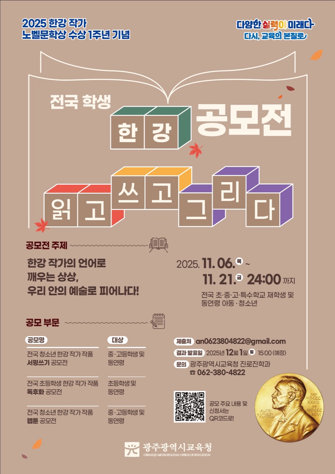 공모전명: 2025 한강 작가 노벨문학상 수상 1주년 기념 전국 학생 공모전 ‘읽고 쓰고 그리다’