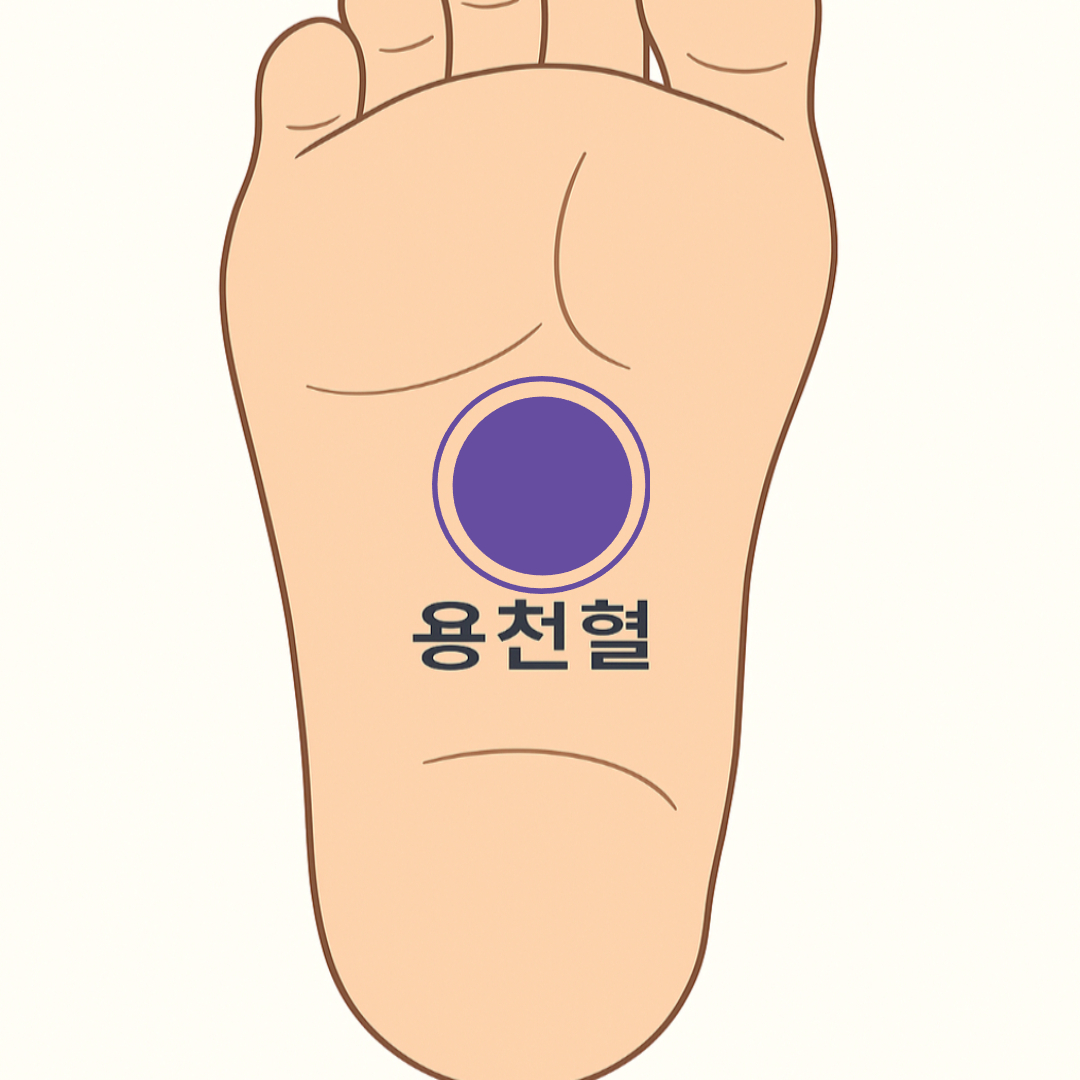 | 용천혈 | 발바닥 중앙 움푹한 곳 | 기운을 아래로, 안정감 | 손가락·지압봉 사용 |