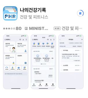 - 구글 플레이스토어 또는 앱스토어에서 나의건강기록 검색 후 설치