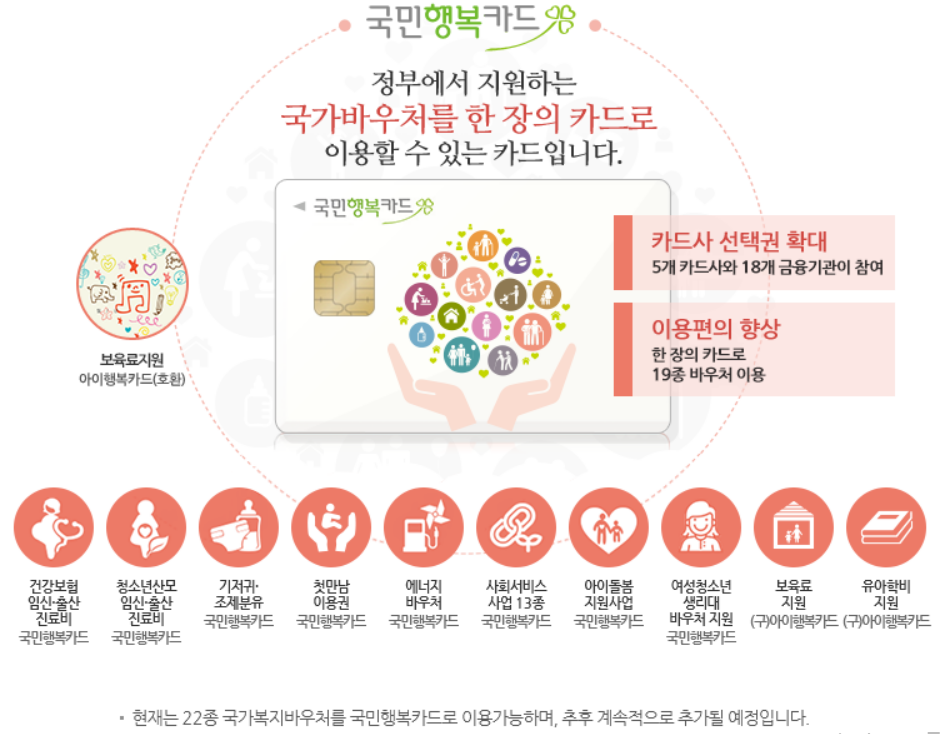 - 국민행복카드: 국가 바우처를 결제할 수 있는 ‘통합 결제 수단’